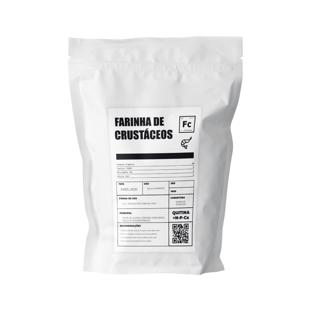 Insumo natural para nutrição e proteção do solo, produzido a partir da farinha de camarão. Ideal para cultivos que buscam fortalecimento radicular, floração vigorosa e biocontrole integrado.