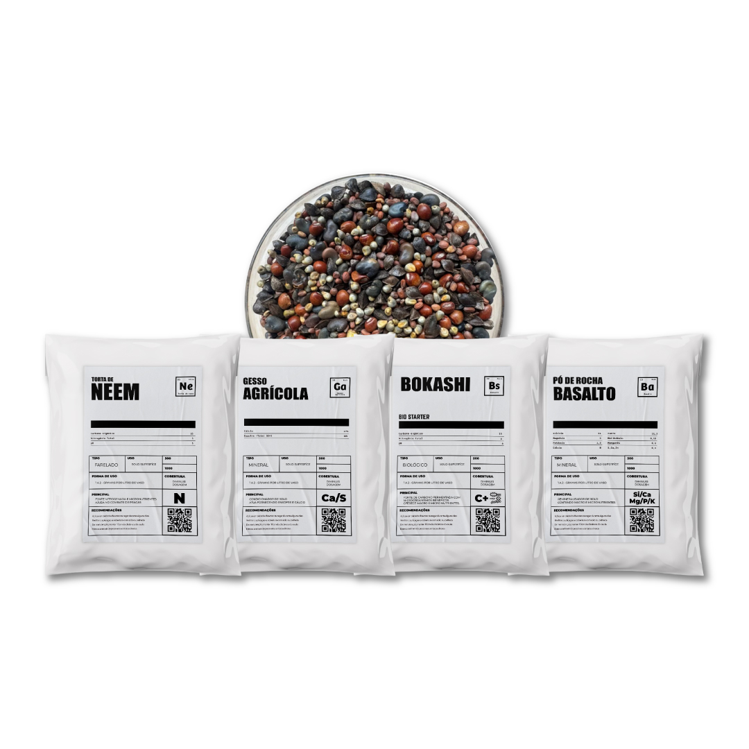 Este kit foi projetado para regenerar a vida e a estrutura do seu solo. É a solução para recuperar canteiros e vasos "cansados", fechar ciclos e iniciar uma cobertura viva, promovendo um ecossistema sustentável e autossuficiente. Ideal para agricultura regenerativa, jardinagem natural e revitalização de solo degradados.