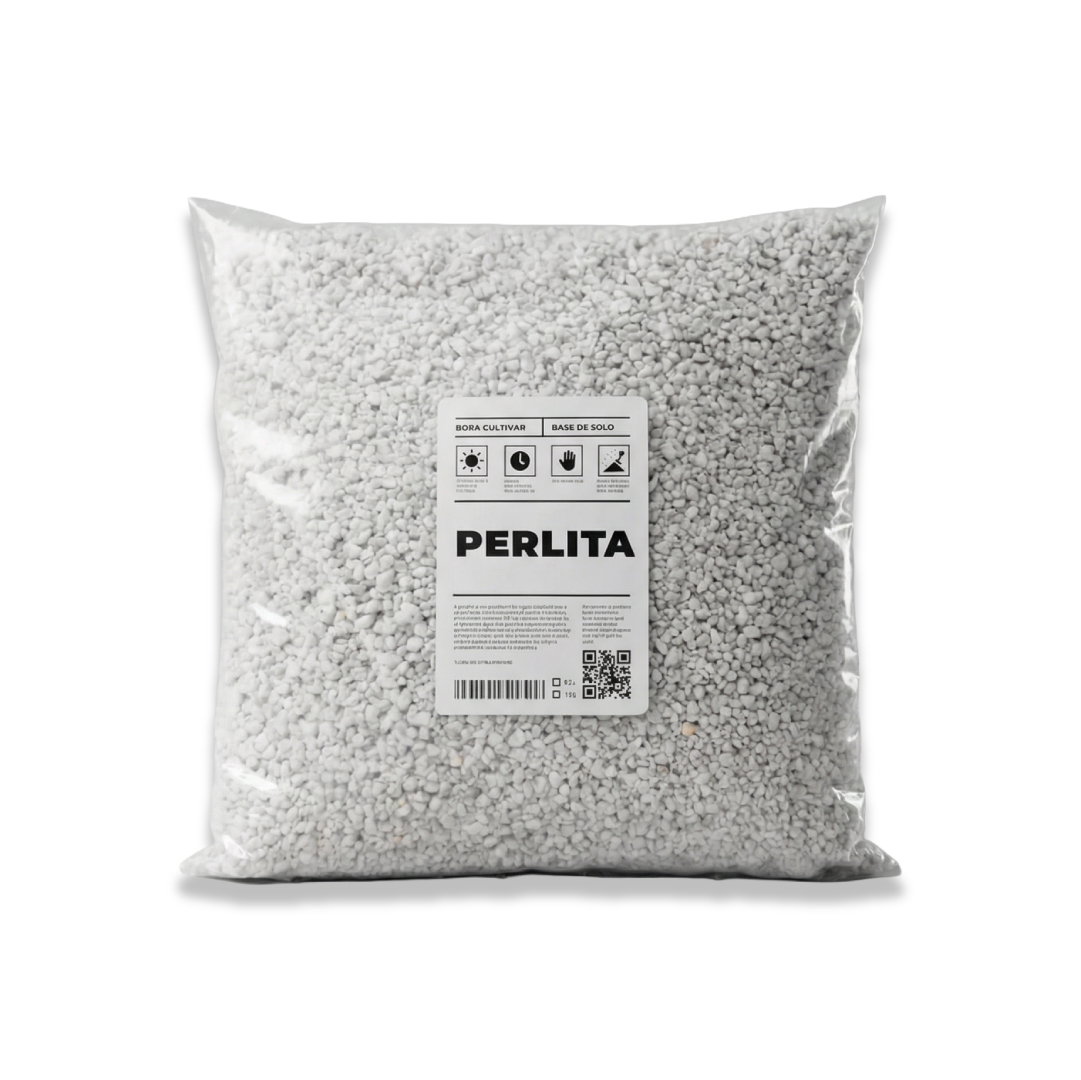 A perlita é uma rocha vulcânica expandida termicamente, resultando em grânulos grossos, leves e altamente porosos. Inerte, estéril e com pH neutro, sua função é garantir máxima aeração e drenagem ao substrato, evitando o encharcamento e a compactação das raízes.