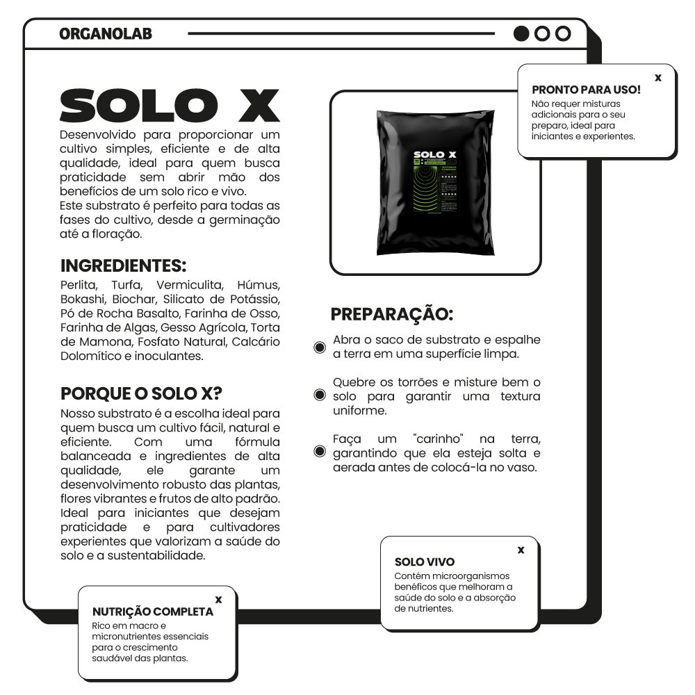 Nosso substrato orgânico foi desenvolvido para proporcionar um cultivo simples, eficiente e de alta qualidade, ideal para quem busca praticidade sem abrir mão dos benefícios de um solo rico e vivo. Com uma receita balanceada que inclui perlita, turfa, vermiculita, húmus, bokashi, biochar, silicato de potássio, pó de rocha basalto, farinha de osso, farinha de algas, gesso agrícola, torta de mamona, fosfato natural, calcário dolomítico e inoculantes, este substrato é perfeito para todas as fases do cultivo, desde a germinação até a floração.